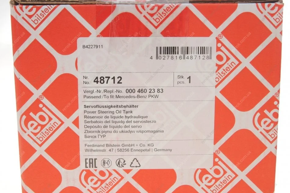 Бачок гидроусилителя руля MB (S203/W204/W211/212/S212/R230) 05- FEBI BILSTEIN 48712 (0004602383, 0004600983, A0004602383)