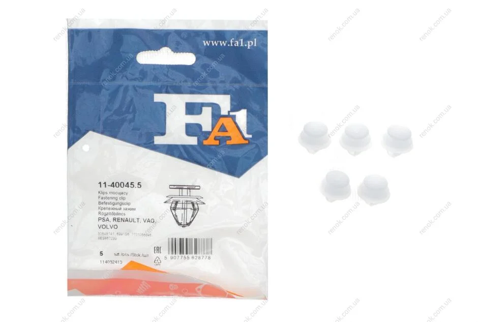 Кліпса кріплення обшивки (к-кт 5шт) Audi/Citroen/Peugeot/Renault/Skoda/VW/Volvo Fischer Automotive One (FA1) 11-40045.5 (6991S6, 7701056846)