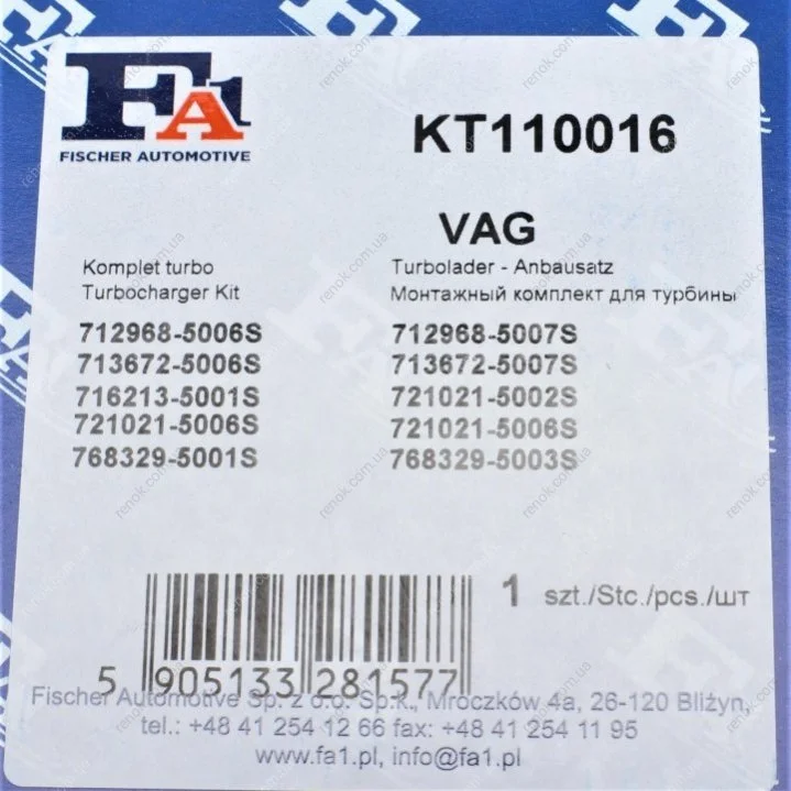 Аналоги "KT110016 Fischer Automotive One (FA1)":