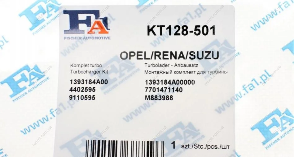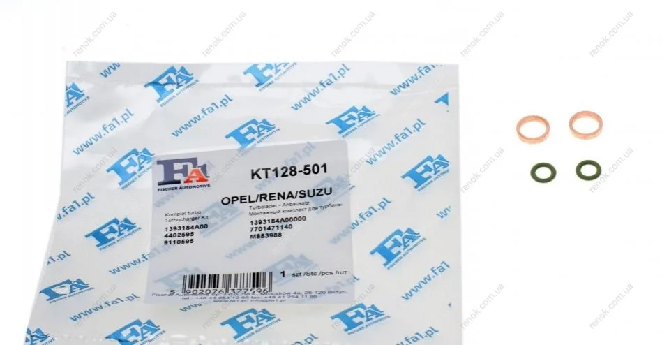 Прокладка трубки подачи масла в турбину Renault Trafic 1.9DCI (к-кт) Fischer Automotive One (FA1) KT128-501 (7701471140, M883988, 4402595)