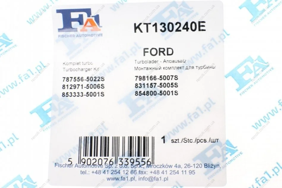 Комплект прокладок турбины Ford Transit 2.2 TDCi 11- Fischer Automotive One (FA1) KT130240E (93412, 93533)