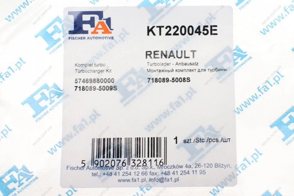 Комплект прокладок турбины Renault Laguna 2.2 dCi 01-07 Fischer Automotive One (FA1) KT220045E