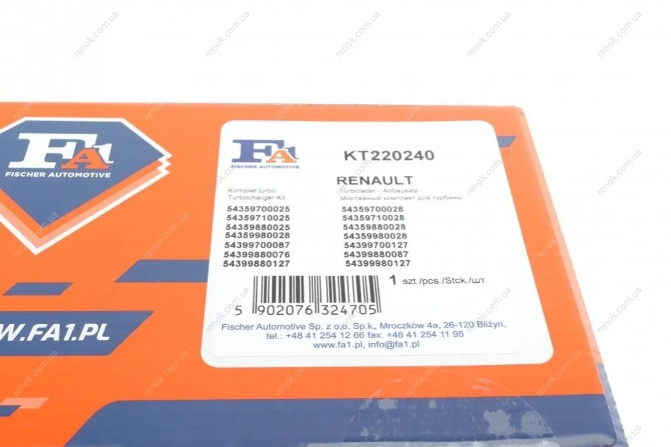 Комплект прокладок турбины Renault Kangoo 1.5dCi 10-(80kw) Fischer Automotive One (FA1) KT220240