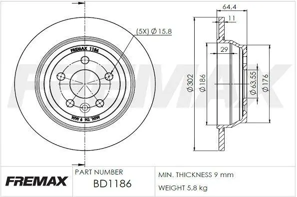 Диск гальмівний FREMAX BD-1186 (lr039935)