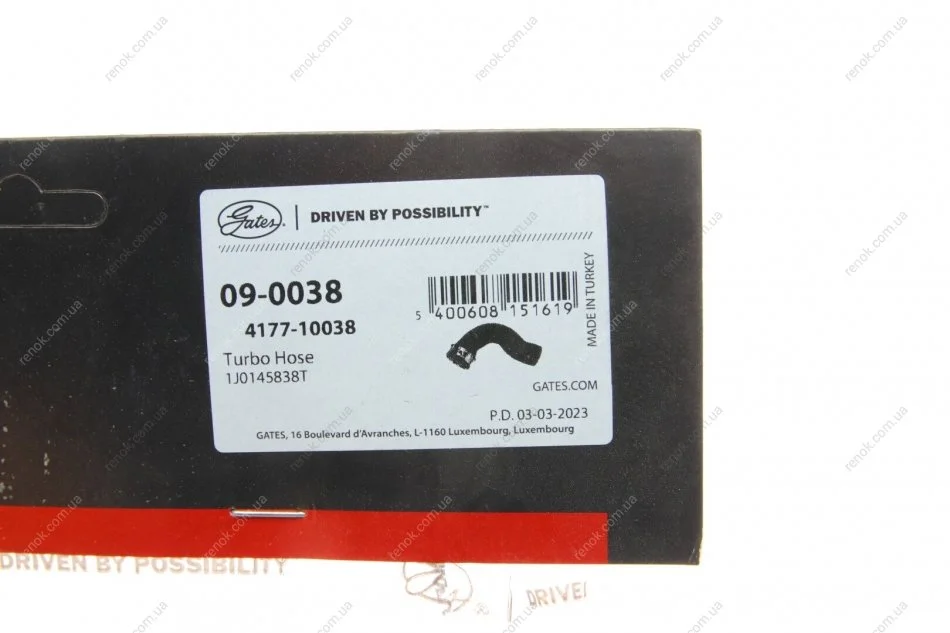 Патрубок интеркулера Audi A3/Skoda Octavia/VW Golf IV 1.9 TDI 00-10 Gates 09-0038 (1J0145762BJ)