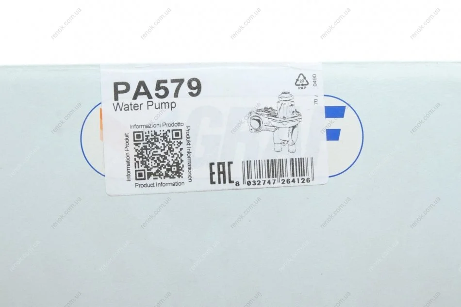 Насос воды Audi/Seat/VW 1.3/1.5/1.6/D/TD/1.7/1.8/1.9D/TD/TDI/SDI/2.0/E (B/B) (6 лоп) (с корпусом) GRAF PA579 (026121010, 026121010C, 026121010CV)