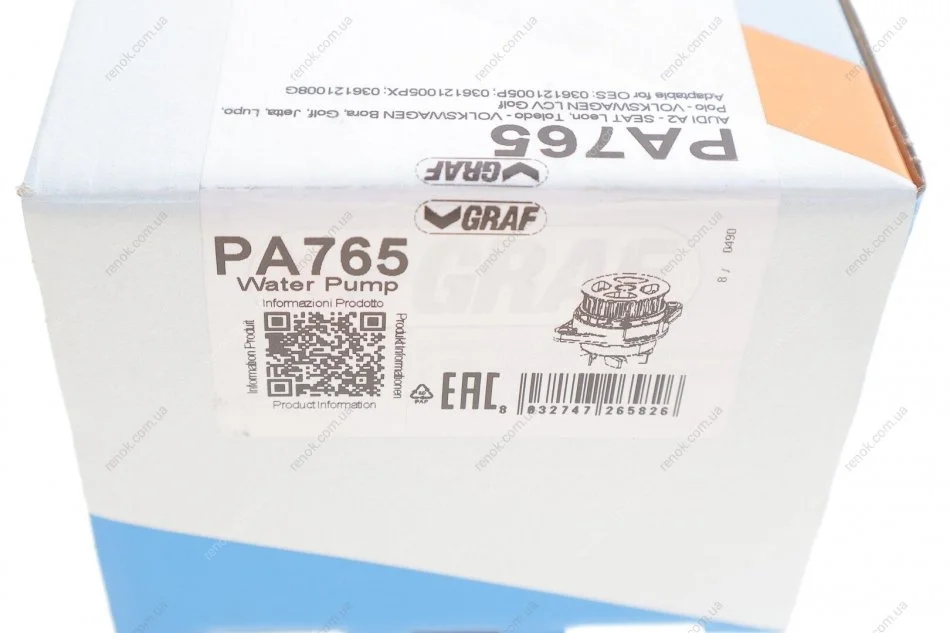 Насос воды Audi A2/Seat Leon/Toledo/VW Golf/Jetta/Polo/Bora 1.6 16V/1.6FSI 98-05 (27z) (B/B) (7 лоп) GRAF PA765 (036121005F, 036121005P, 036121008G)