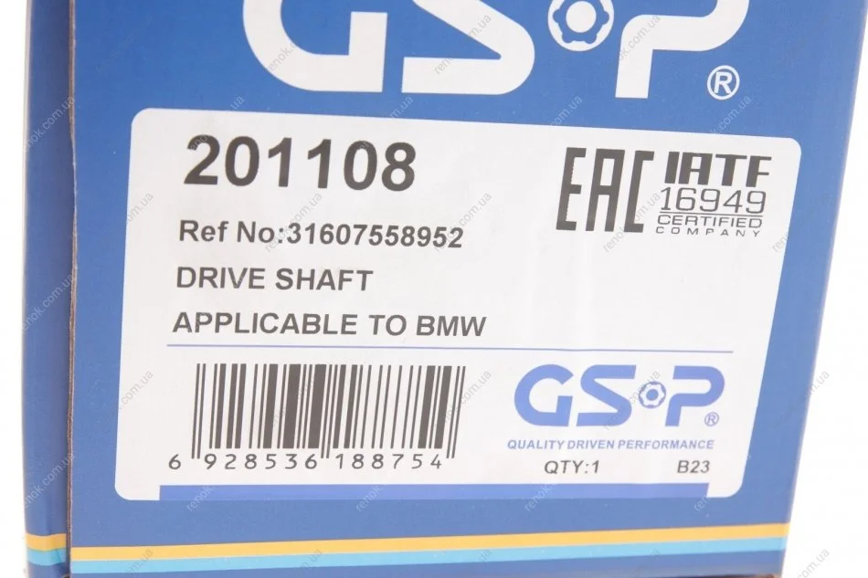Полуось (передняя) BMW 5 (E60) 04-09 (R) (30x27/932) M57/N52/N53 GSP 201108 (31607570274, 31607558952, 31607570272)