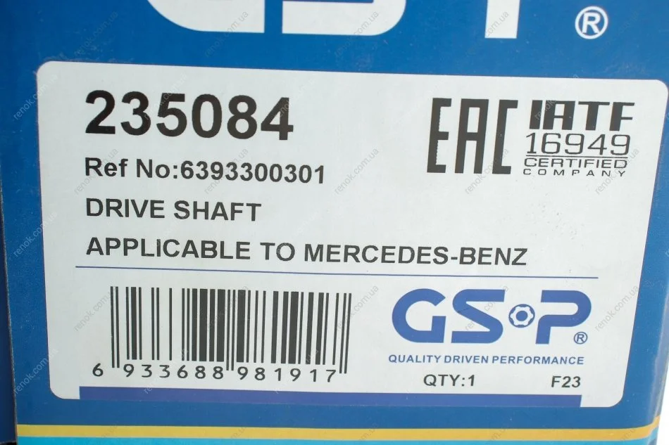 Полуось (передняя) MB Vito (W639) 4x4 07- (30x652) GSP 235084 (a6393300701, 6393300701, A6393300301)