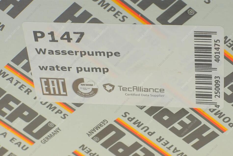 Насос воды MB Vito (W639) 3.0i/3.2i/3.7i/E-class (W210) 2.4i-5.5i -02 HEPU P147 (a1122001401, A1122000901, A112200140180)