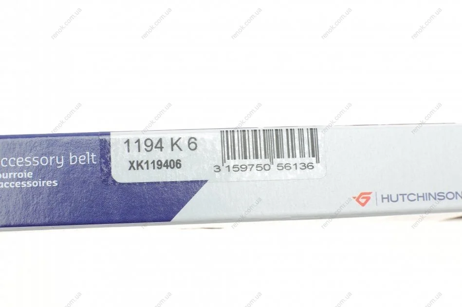 Ремень поликлиновой 6PK1194 HUTCHINSON 1194K6 (06G903137, 11281741427, 1172000Q5E)