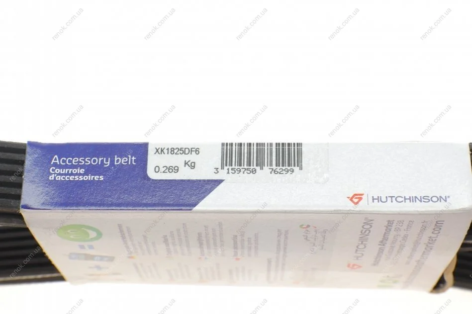 Ремень генератора Volvo 2.0T/2.4D/3.0T6 01-08 HUTCHINSON 1825 KDF 6 (30731862, 30731811, 9458469)