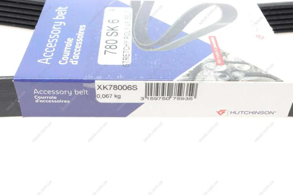 Ремень генератора Citroen C2/C3 1.4HDi 02-/C4/Peugeot 206 CC/207/307 1.6HDi 03-15 (6PK780) HUTCHINSON 780SK6 (5750YK)