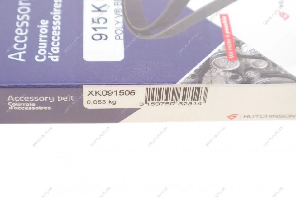 Ремень генератора Citroen Jumper/Peugeot Boxer 2.5D/TDI 94-02 AC/2.5D-95 (6PK915) HUTCHINSON 915K6 (128044, 128053, 5750D9)