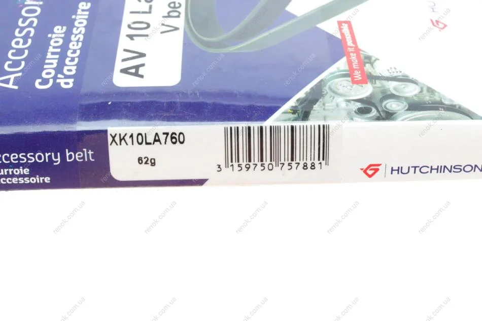 Ремень генератора VW Passat/Opel Kadett E/Ford Escort/Audi 80 1.3-1.8 -97 HUTCHINSON AV 10 LA 760 (7700854327, 068145271C, 1576983)