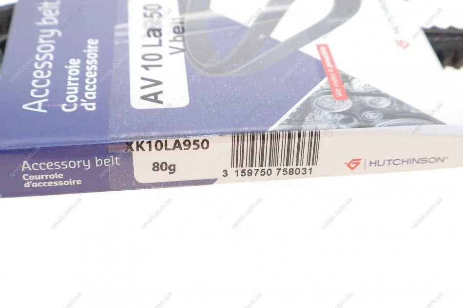 Ремень генератора VW Golf II/VW Passat B3/B4/Audi 80/100 1.6/1.8/2.0 (10x950) HUTCHINSON AV10LA950 (7701349590, 5000612768, 026903137C)