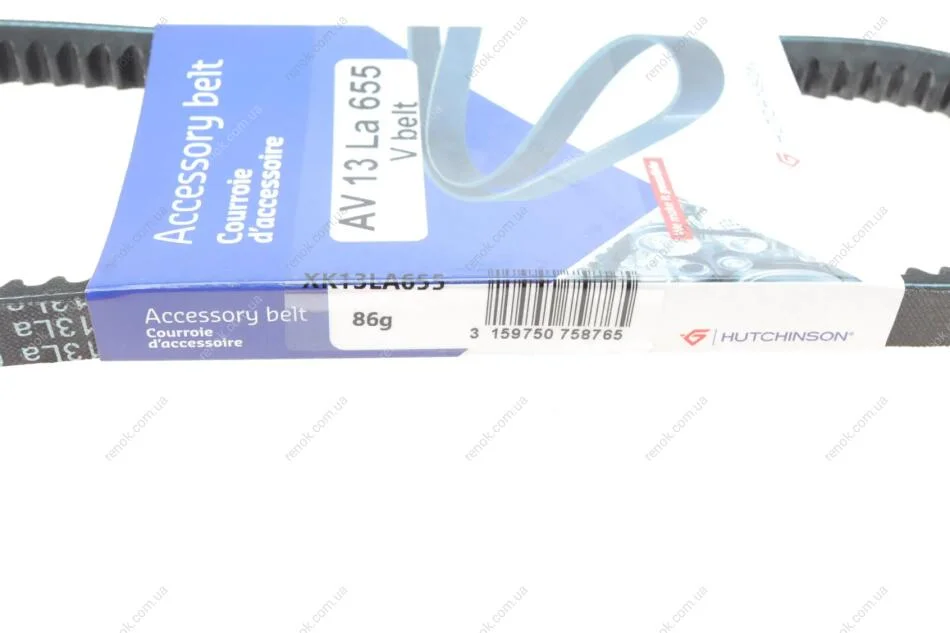Ремень генератора Hyundai Elantra/Lantra II 1.6-2.0 16V 96-02 (13x655) HUTCHINSON AV 13 La 655 (5717034000, 5717036100, 5723129000)