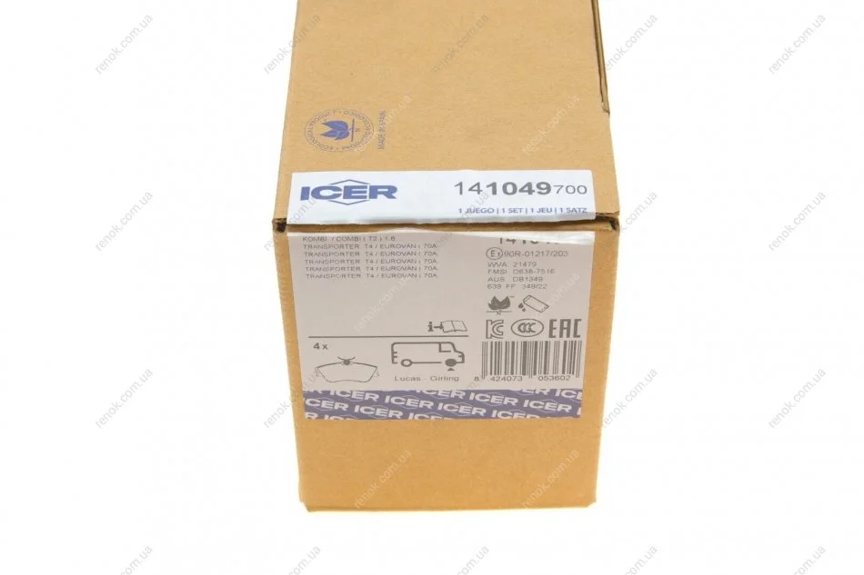 Колодки тормозные (передние) VW T4 90-03 ICER 141049-700 (701698151D, 701698151E, 701698151J)