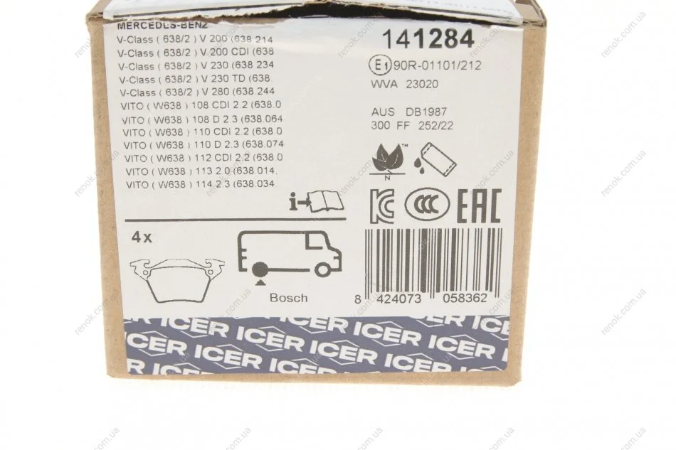 Тормозные колодки (задние) MB Vito (W638) CDI 96-03 ICER 141284 (0034200220, 0004214210)