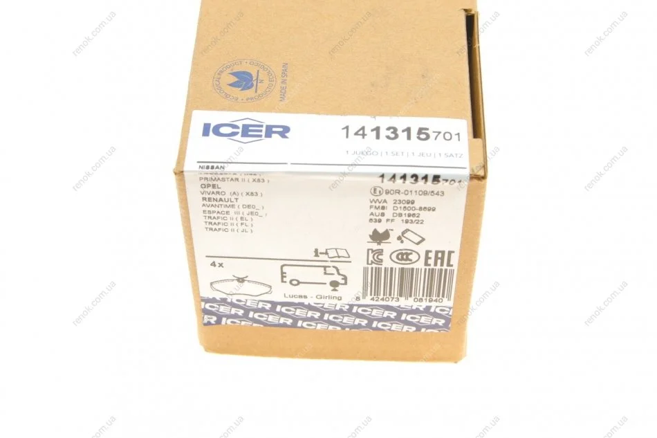 Колодки тормозные (передние) Renault Trafic II/Opel Vivaro A/Nissan Primastar 01- ICER 141315-701 (7701050914, 6025371279, 6024371662)