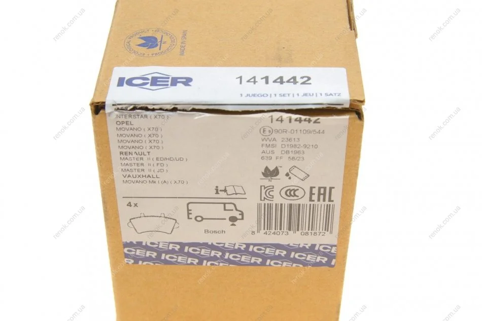 Колодки тормозные (передние) Renault Master II/Opel Movano 98-/Nissan Interstar 02- ICER 141442 (7701207339, 7701206727, 7485114490)