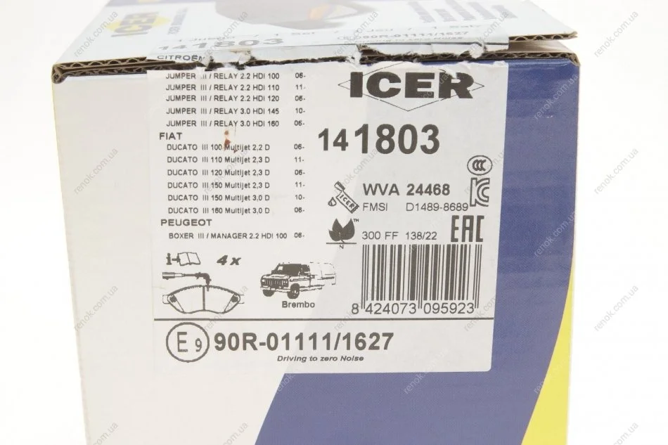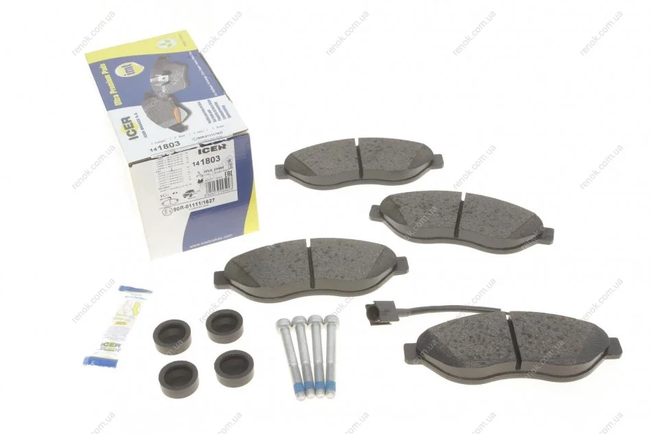Колодки тормозные (передние) Citroen Jumper/Fiat Ducato/Peugeot Boxer 06- (+датчик) ICER 141803 (1617284580, 425356, 425358)