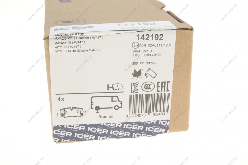 Колодки тормозные (задние) MB Vito (W447) 14- ICER 142192 (4474206700, 4474200120, 4474200320)