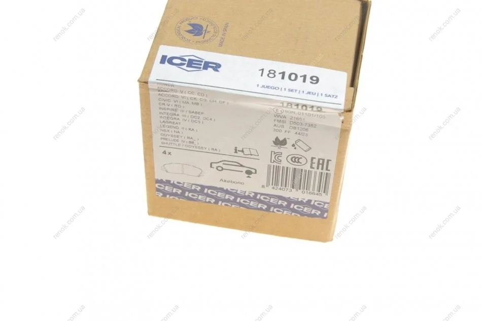 Комплект гальмівних колодок (дискових) ICER 181019 (45022S10A00, 45022S10A02, 45022S10G00)