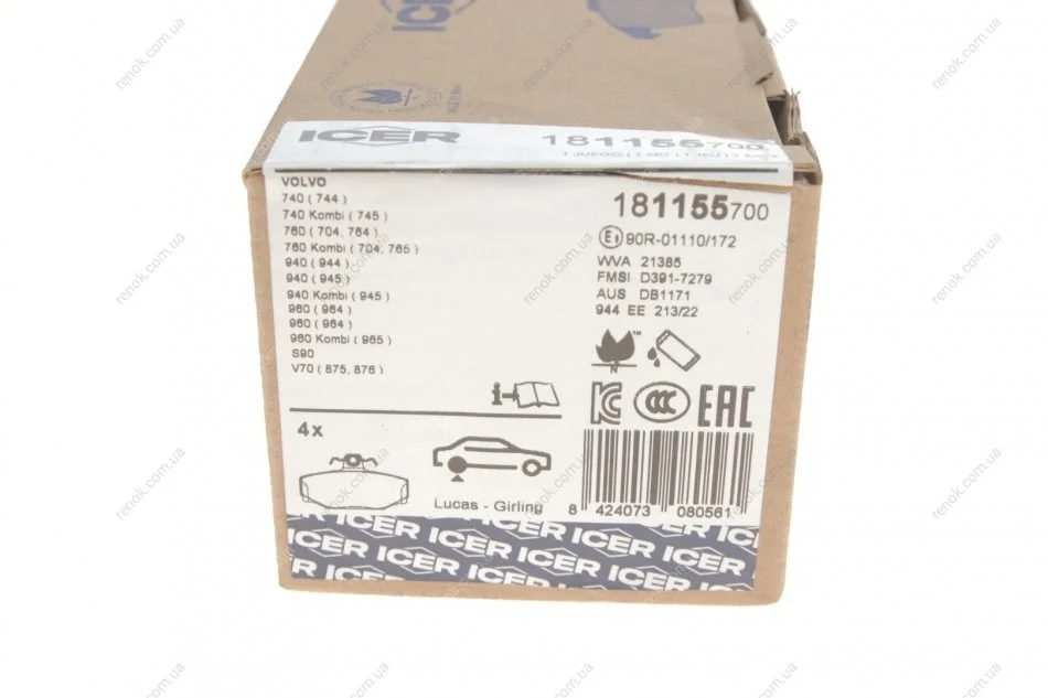 Комплект гальмівних колодок (дискових) ICER 181155-700 (270923, 2709236, 271573)
