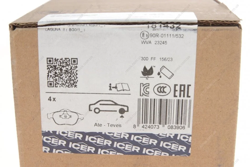 Колодки тормозные (передние) Renault Laguna II 01-07/Scenic I 00-03 ICER 181432 (7701209809, 7701208182, 7701206599)