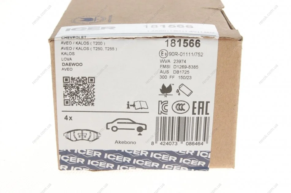 Колодки тормозные (передние) Chevrolet Aveo/Kalos/Daewoo Kalos 03- ICER 181566 (96534653, 96566892)