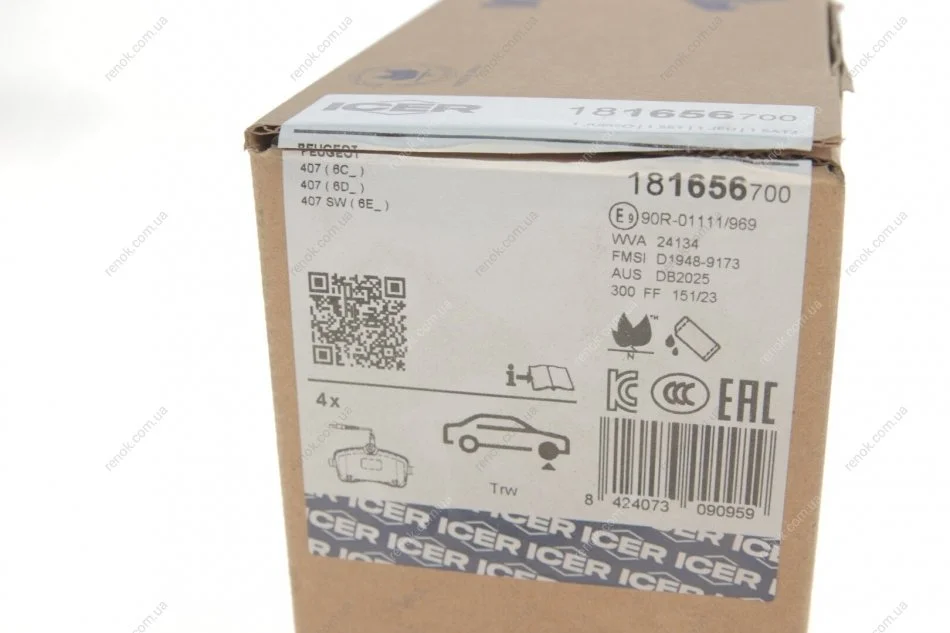 Колодки тормозные (передние) Peugeot 407 04- (+датчики) ICER 181656-700 (1611456580, 425277, 425335)