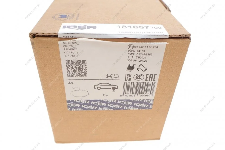 Комплект тормозных колодок, дисковый тормоз ICER 181657-700 (1611458980, 425294, 425411)