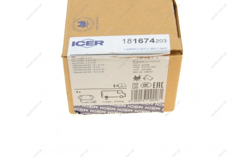 Тормозные колодки (задние) VW T5 03-15/T6 15- (+датчик) ICER 181674-203 (7H0698451, 7H0698451B, 7E0698451)