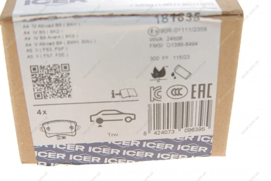 Колодки тормозные (задние) Audi A4/A5/Q5 07- ICER 181835 (8K0698451, 8K0698451A, 8K0698451B)