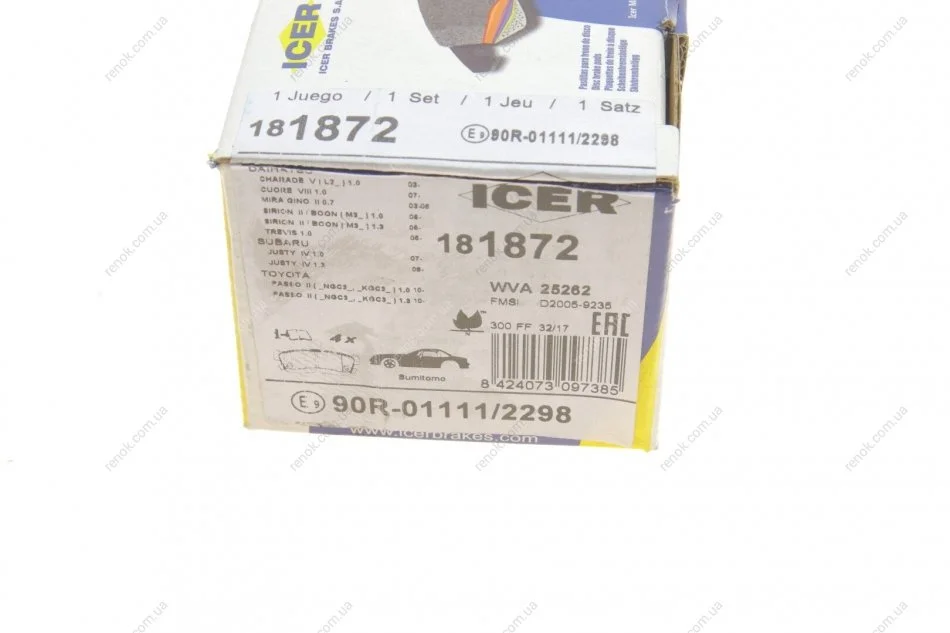 Комплект гальмівних колодок (дискових) ICER 181872 (04465B1010, 04465B1050, 04465B1110)