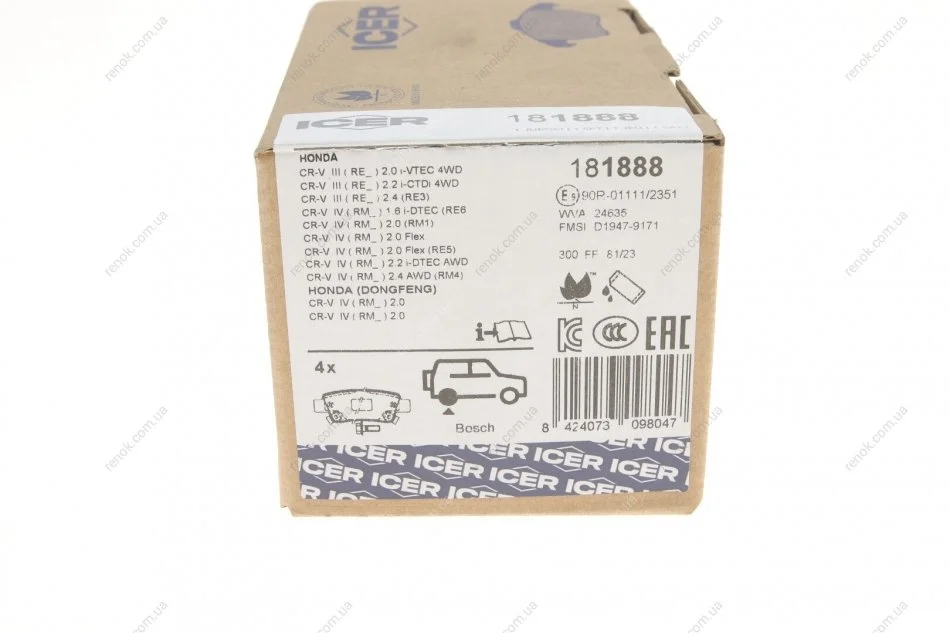 Колодки тормозные (задние) Honda CR-V III/IV 06- ICER 181888 (43022SWWG01, 43022SWWG02, 43022T1GG00)