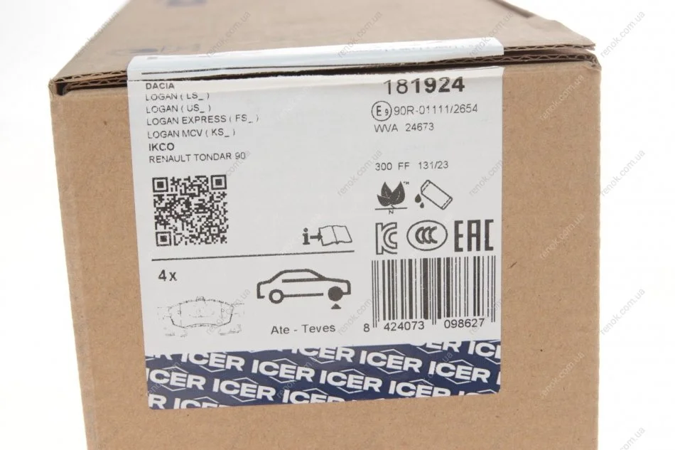 Колодки тормозные (передние) Renault Logan/Dacia Logan 04-/Sandero 10-/Lada Largus 12- ICER 181924 (6001549803, 4106000Q0C, 8671016701)
