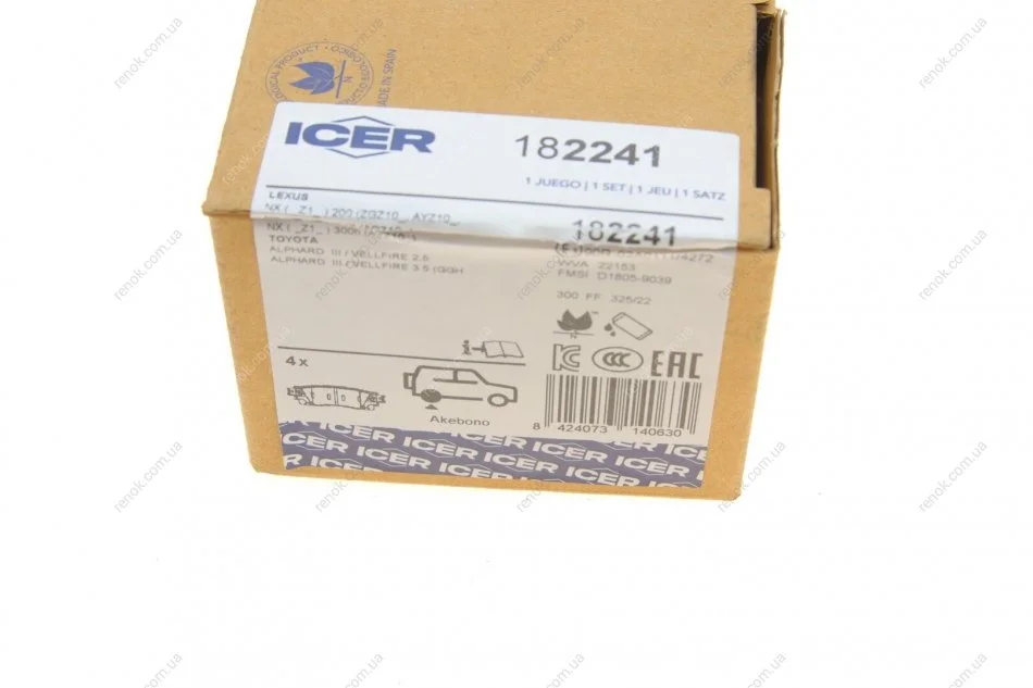 Тормозные колодки (задние) Lexus LM 20-/NX 14-/Toyota Alphard 15-/Harrier 13- ICER 182241 (0446658021, 0446658022, 044667801079)