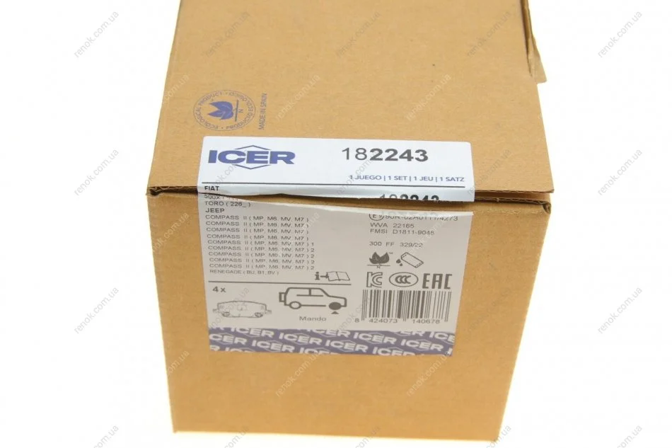 Колодки тормозные (передние) Fiat 500X/Jeep Renegade 14-/Compass 16- ICER 182243 (77367214, 77367282, 68263132AA)