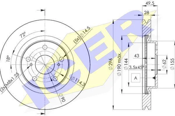 Диск гальмівний ICER 78BD3107-2 (4351242050, 4351242090, 4351242100)