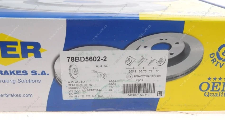 Диск гальмівний ICER 78BD5602-2 (1J0615301D, 1J0615301J, 1J0615301L)