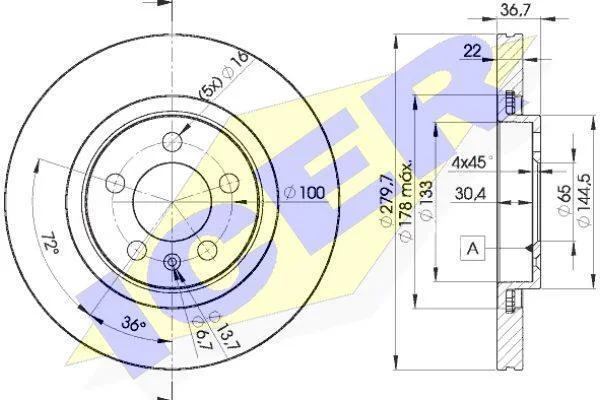 Диск гальмівний ICER 78BD5603-2 (1J0615301E, 1J0615301M, 1J0615301P)