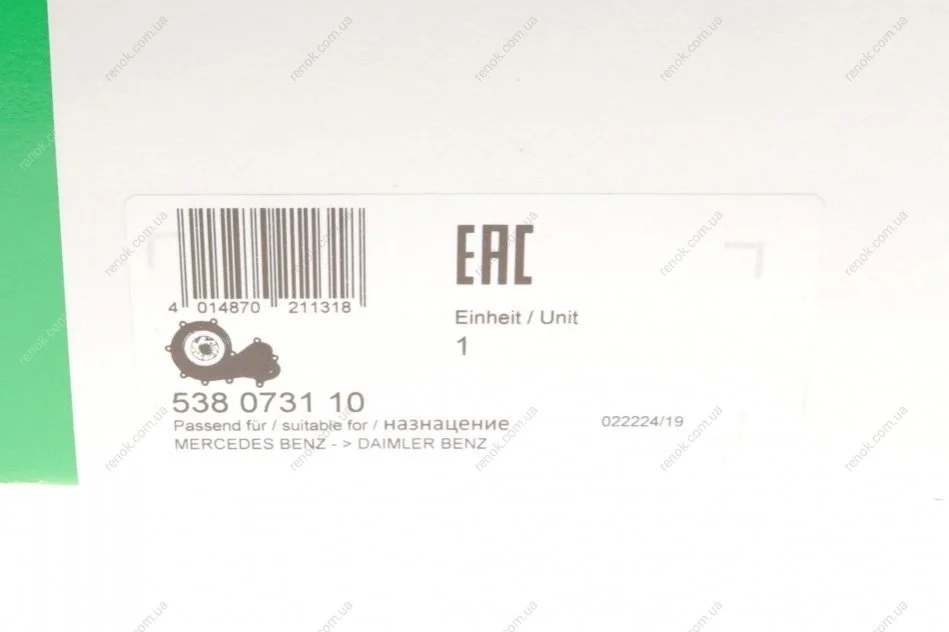 Водяной насос MERCEDES BENZ CLA 200 CDI 11- INA 538 0731 10 (a6512000715, A6512000501, A6512004300)