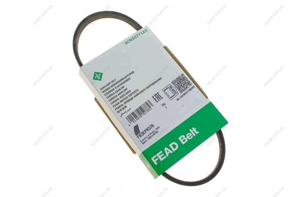 Ремінь генератора поліклиновий INA FB 3EPK576 (9675874180, 3639519)
