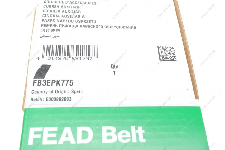 Ремень генератора Dacia Logan/Sandero 1.0 SCe 16- (3PK775) INA FB 3EPK775 (119203106R, 119205655R, 8201712791)