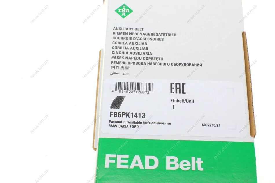 Ремень генератора INA FB 6PK1413 (7700738783, 11281402971, 4612470)