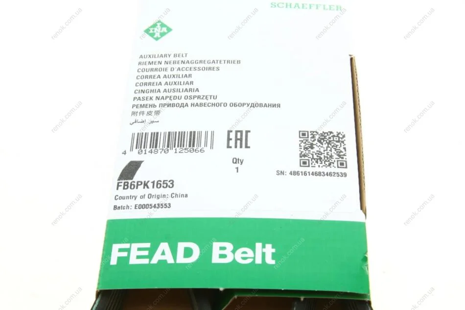 Ремень генератора Ford Escort 1.4-1.8 92-00/Renault Laguna 1.8 93-01/VW Golf II/Passat B3/B4 88-97 INA FB 6PK1653 (5750M2, 5750ZA, 136449)