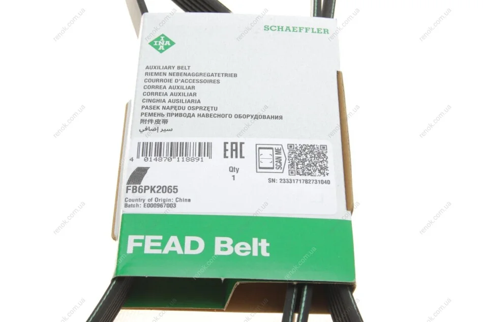Ремінь генератора поліклиновий INA FB 6PK2065 (11287792059, 0119978492, A0119978492)