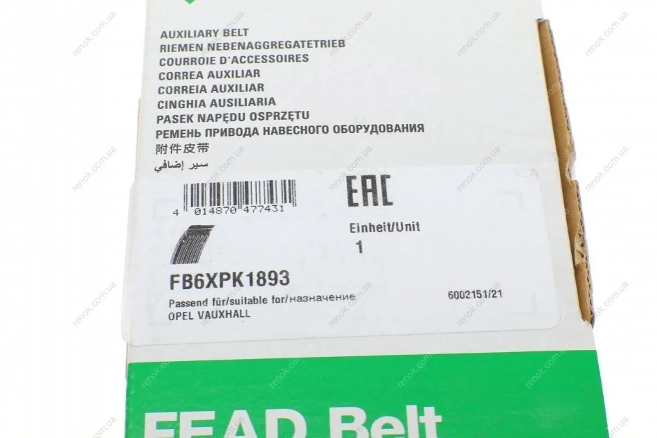 Ремень генератора Opel Astra J/Zafira 2.0CDTI 09- (6PK1893) INA FB6XPK1893 (1340020, 55577367)